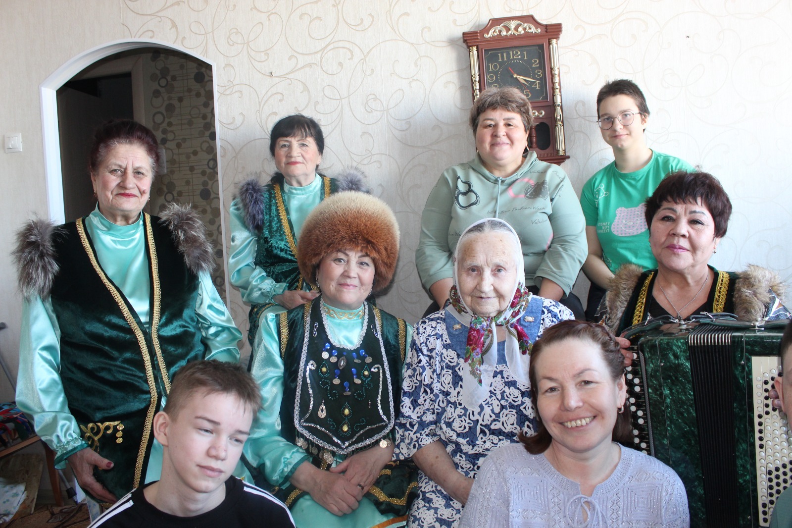 Танцы чередовались с песнями. А Фаниса Маснавиевна поздравила хозяйку квартиры со всеми праздниками: с Международным Женским днем, с Ураза-байрамом и 80-летием Победы в Великой Отечественной войне.