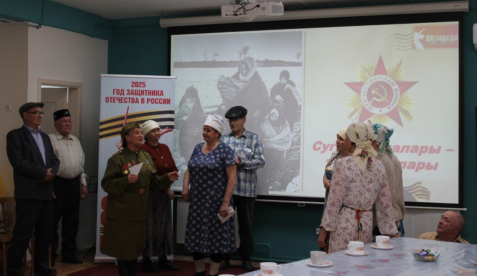 Власть старалась заботиться о будущем поколении. Появлялись детские дома, школы и распределительные пункты, однако помощь от государства не всегда соответствовала масштабам бедствия. Поэтому миллионы подростков от 12 до 16 лет трудились в тылу: на заводах, в колхозах, госпиталях, часто по 12–14 часов в сутки. А еще больше 30 тысяч несовершеннолетних детей участвовали в сражениях, были связными, разведчиками и партизанами. Гостями вечера были дети войны Зиния Акмалова, Югайра Ахатова, Рим Мухамадиев и Владимир Шамсиев (мы его знаем как Аслям Шамси) Все они после войны получили профессию и достойно прожили свою жизнь.