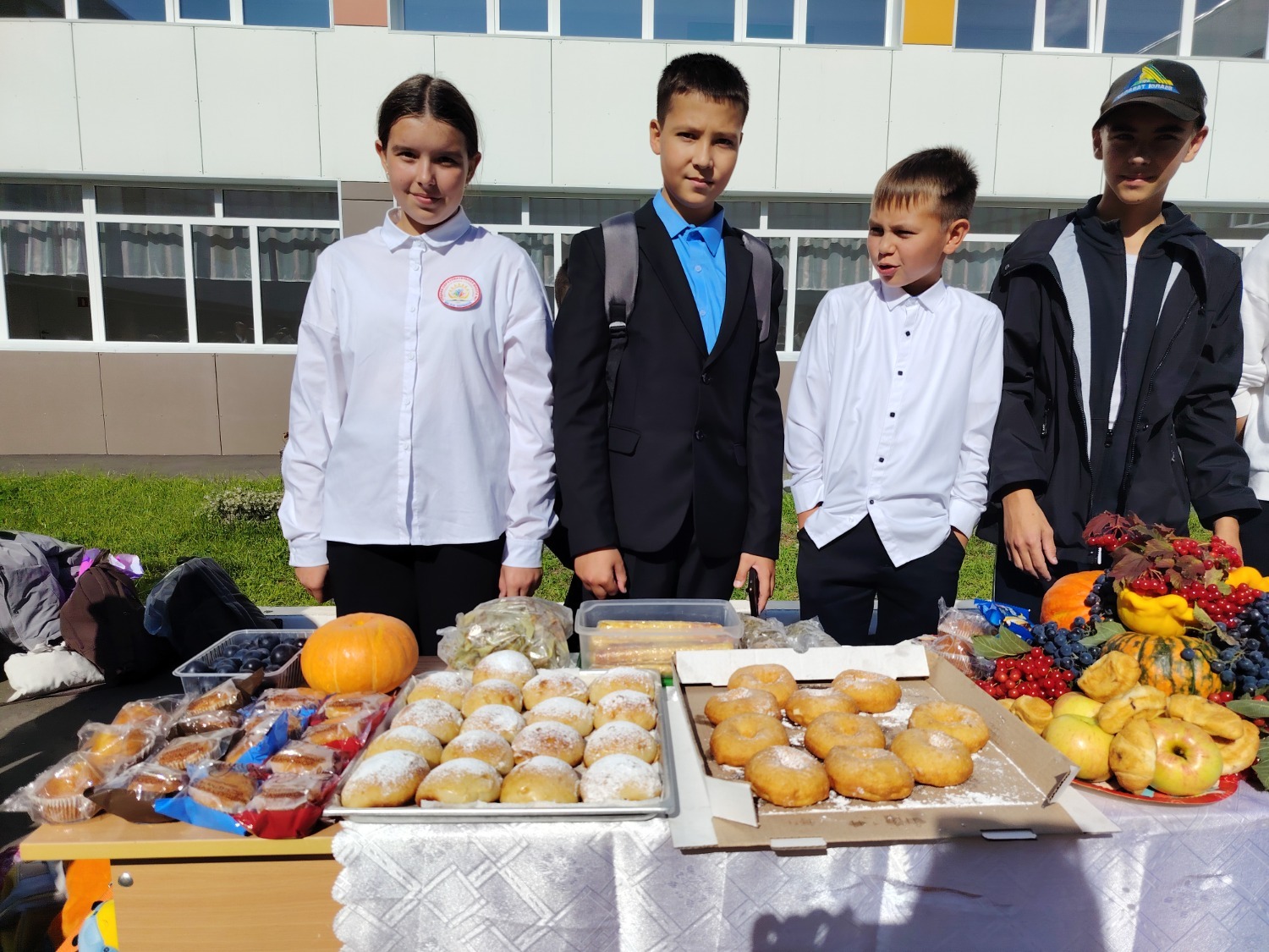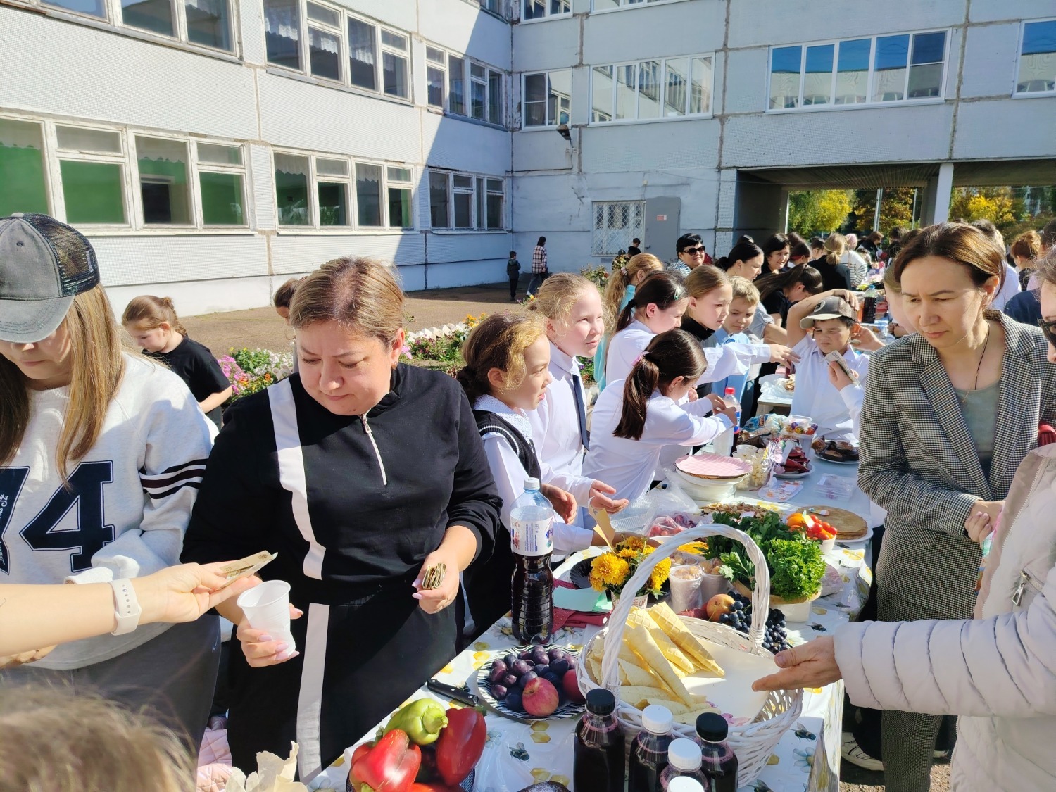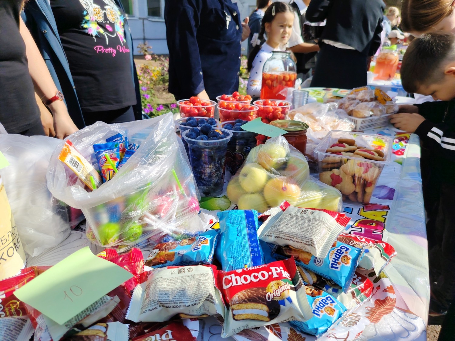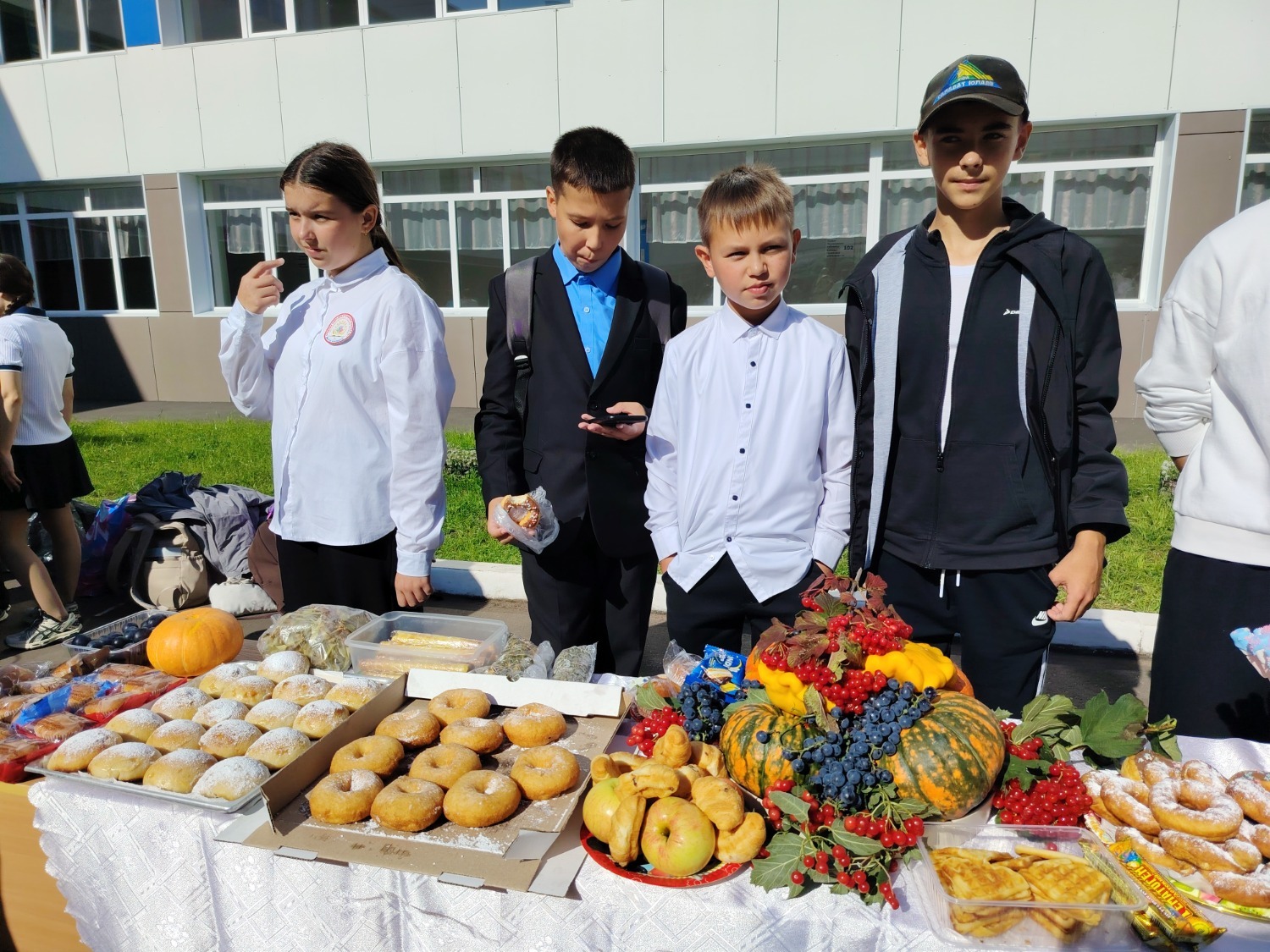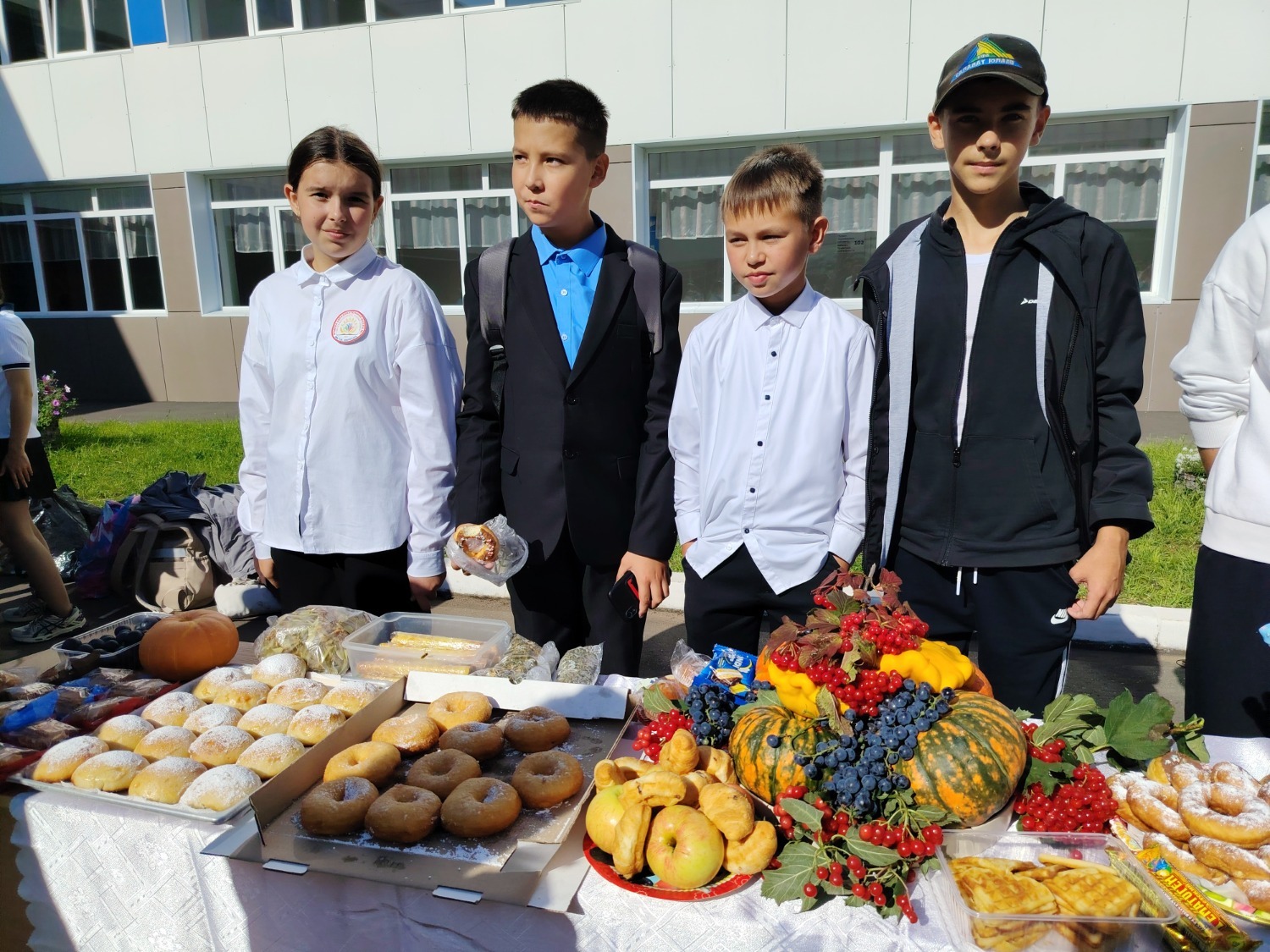 Каждый класс, каждый ребенок, вдохновленный идеей благотворительности, проявил свои маркетинговые таланты и кулинарные способности, чтобы внести свой вклад в общее дело. Столы ломились от разнообразия угощений! Блины, коржи, пироги, вафли, беляши, учпучмаки – чего только не было на прилавках! Особое место заняли дары осени, ведь этот год порадовал богатым урожаем фруктов, ягод и овощей. Заботливые домохозяйки - мамы школьников - приготовили варенья, компоты, джемы и даже пастилу.