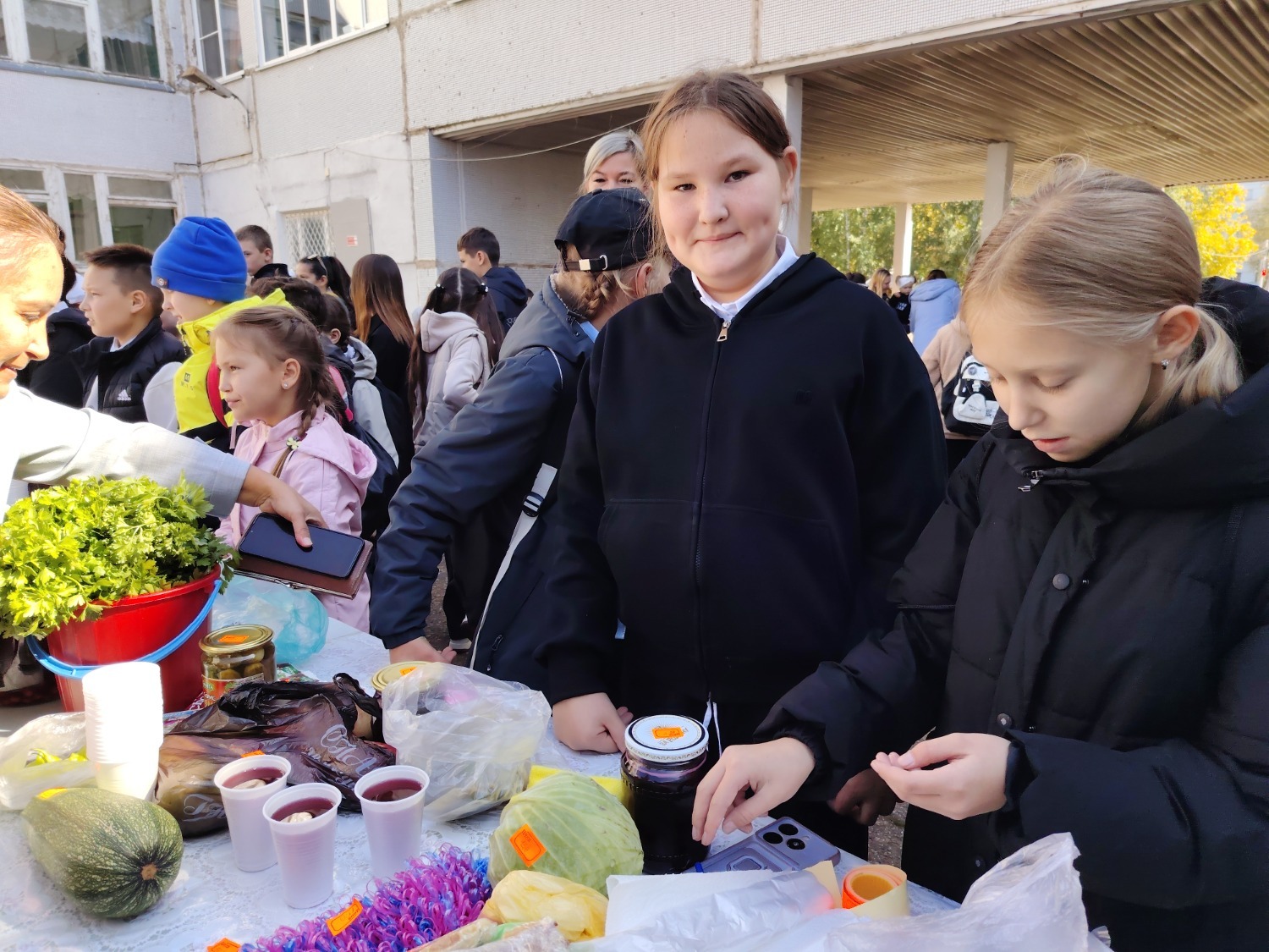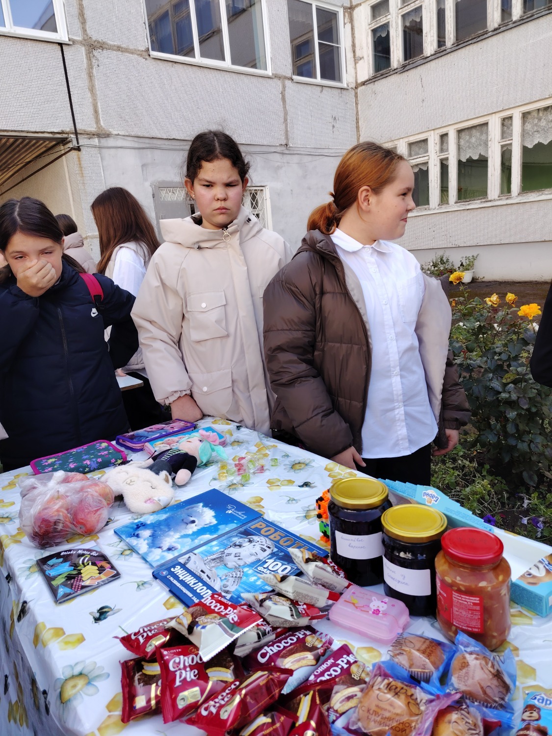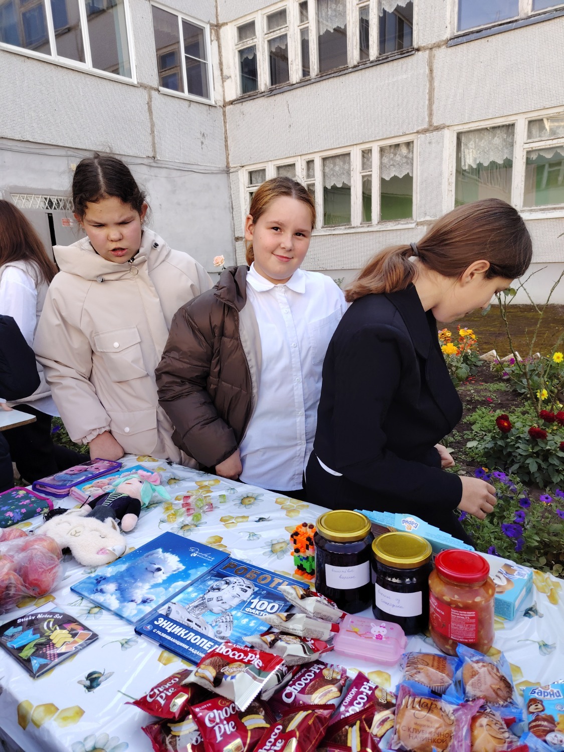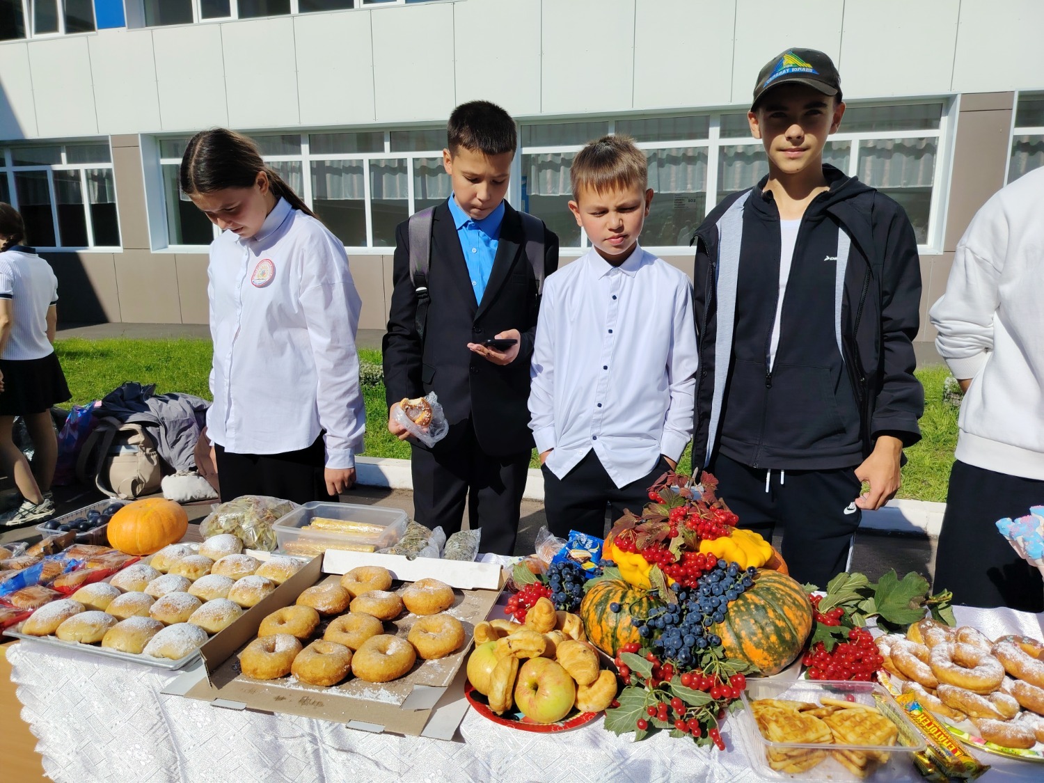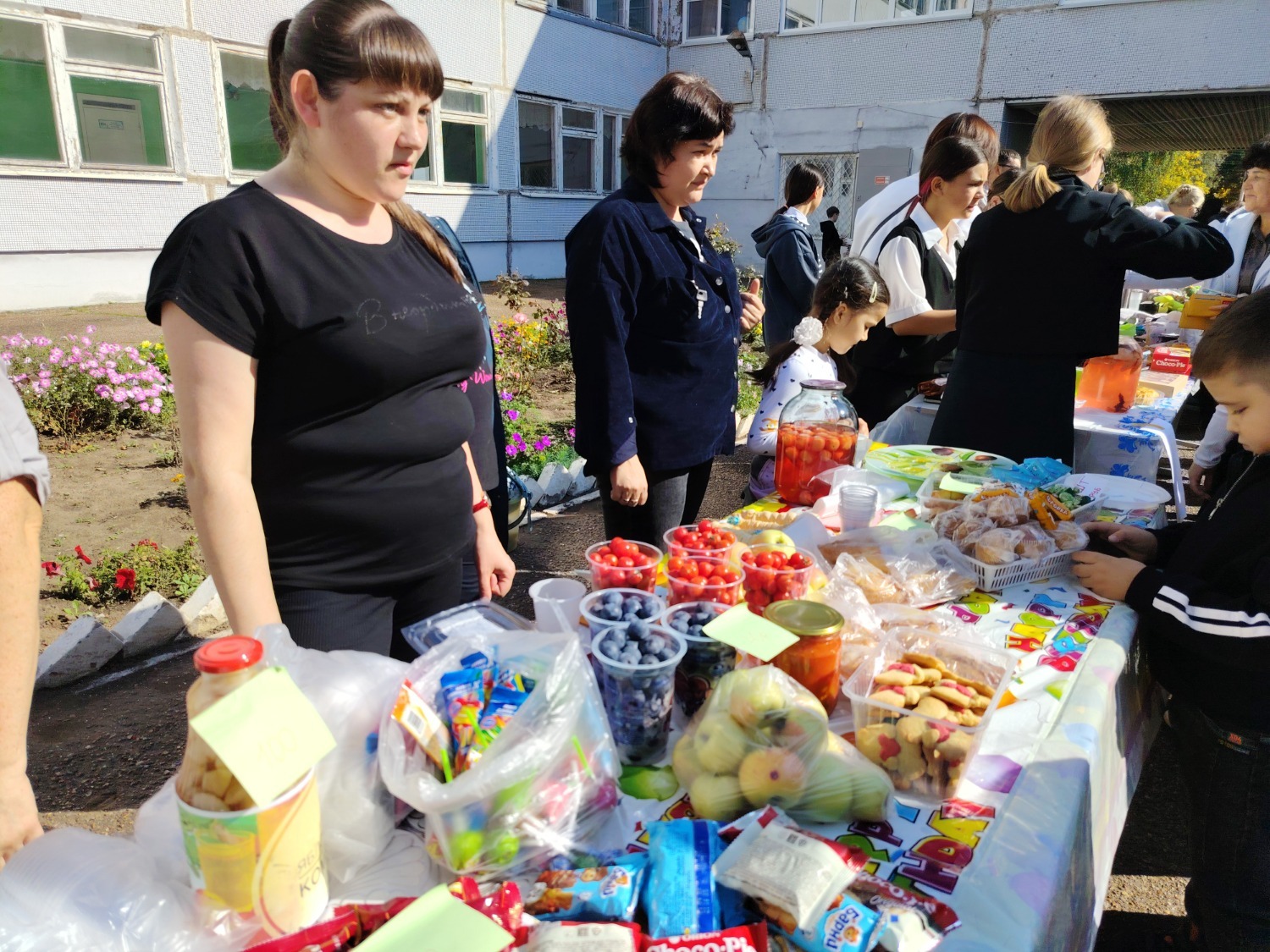 Каждый класс, каждый ребенок, вдохновленный идеей благотворительности, проявил свои маркетинговые таланты и кулинарные способности, чтобы внести свой вклад в общее дело. Столы ломились от разнообразия угощений! Блины, коржи, пироги, вафли, беляши, учпучмаки – чего только не было на прилавках! Особое место заняли дары осени, ведь этот год порадовал богатым урожаем фруктов, ягод и овощей. Заботливые домохозяйки - мамы школьников - приготовили варенья, компоты, джемы и даже пастилу.