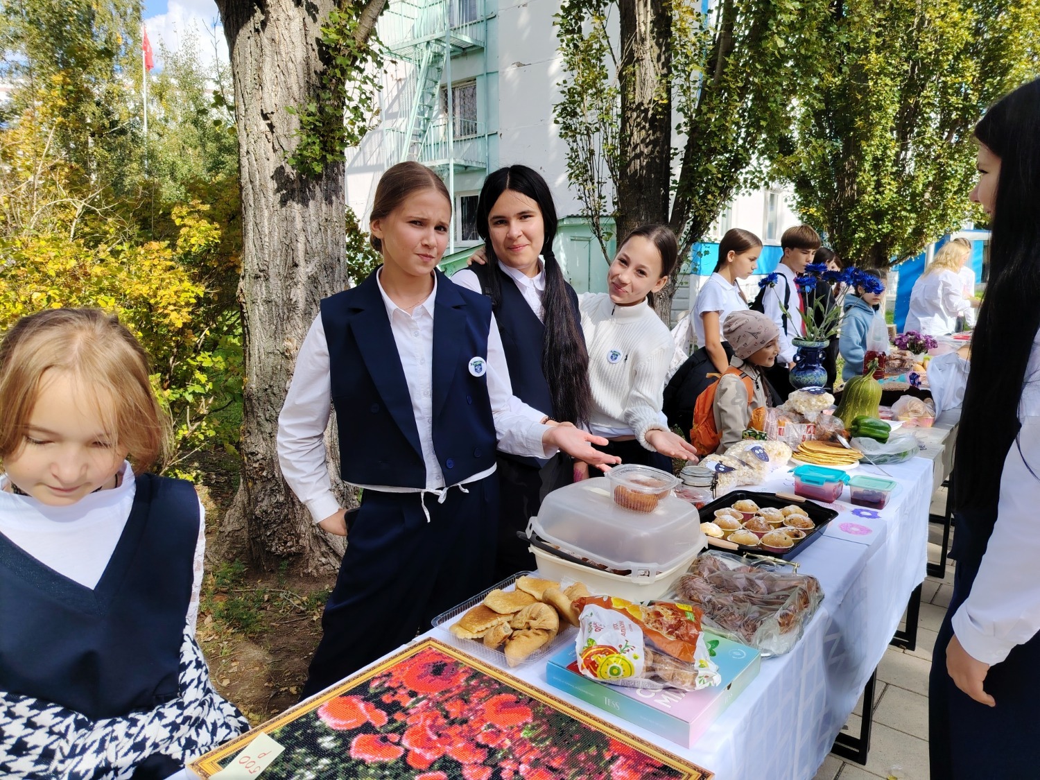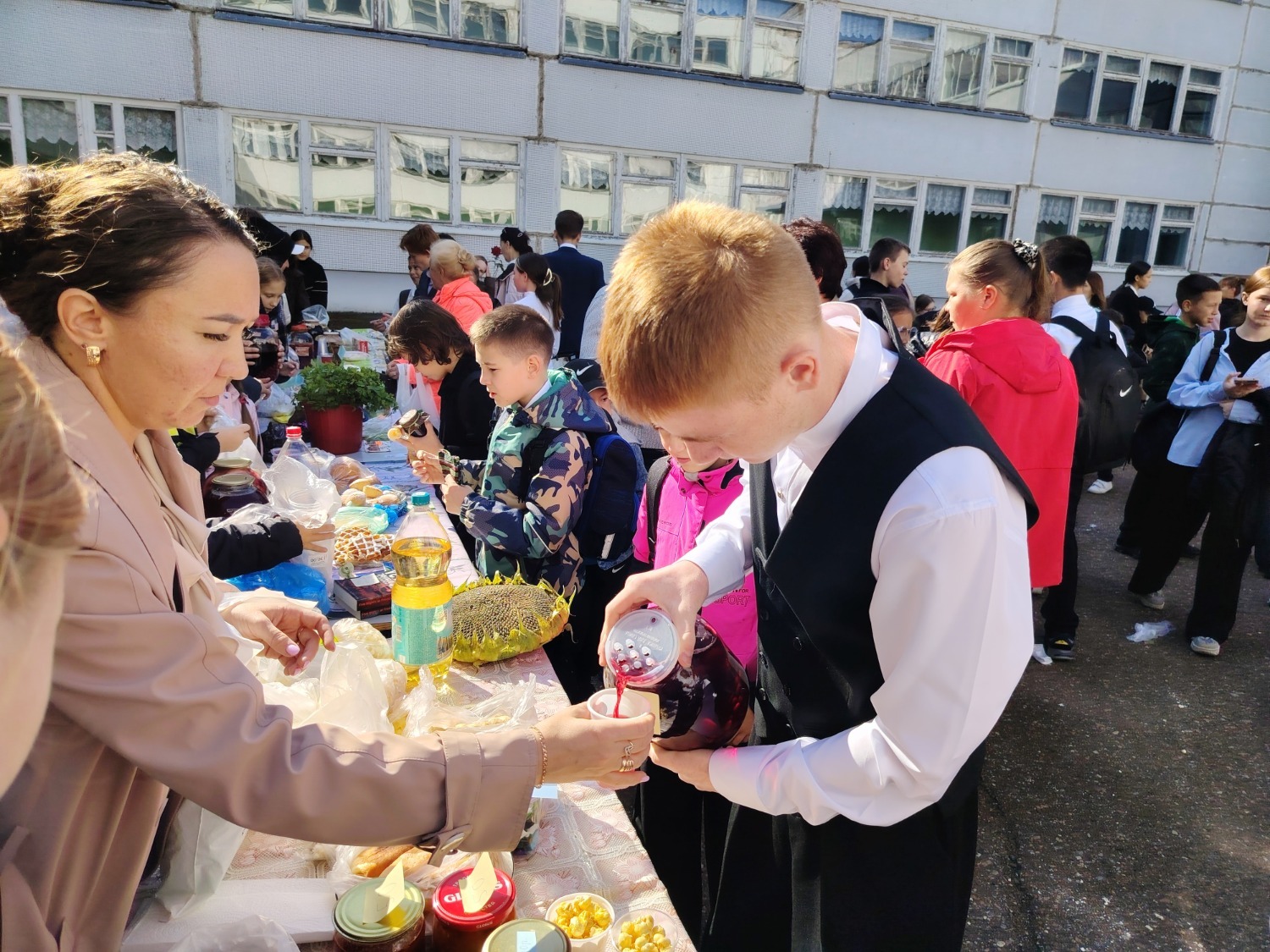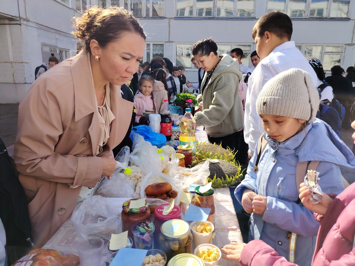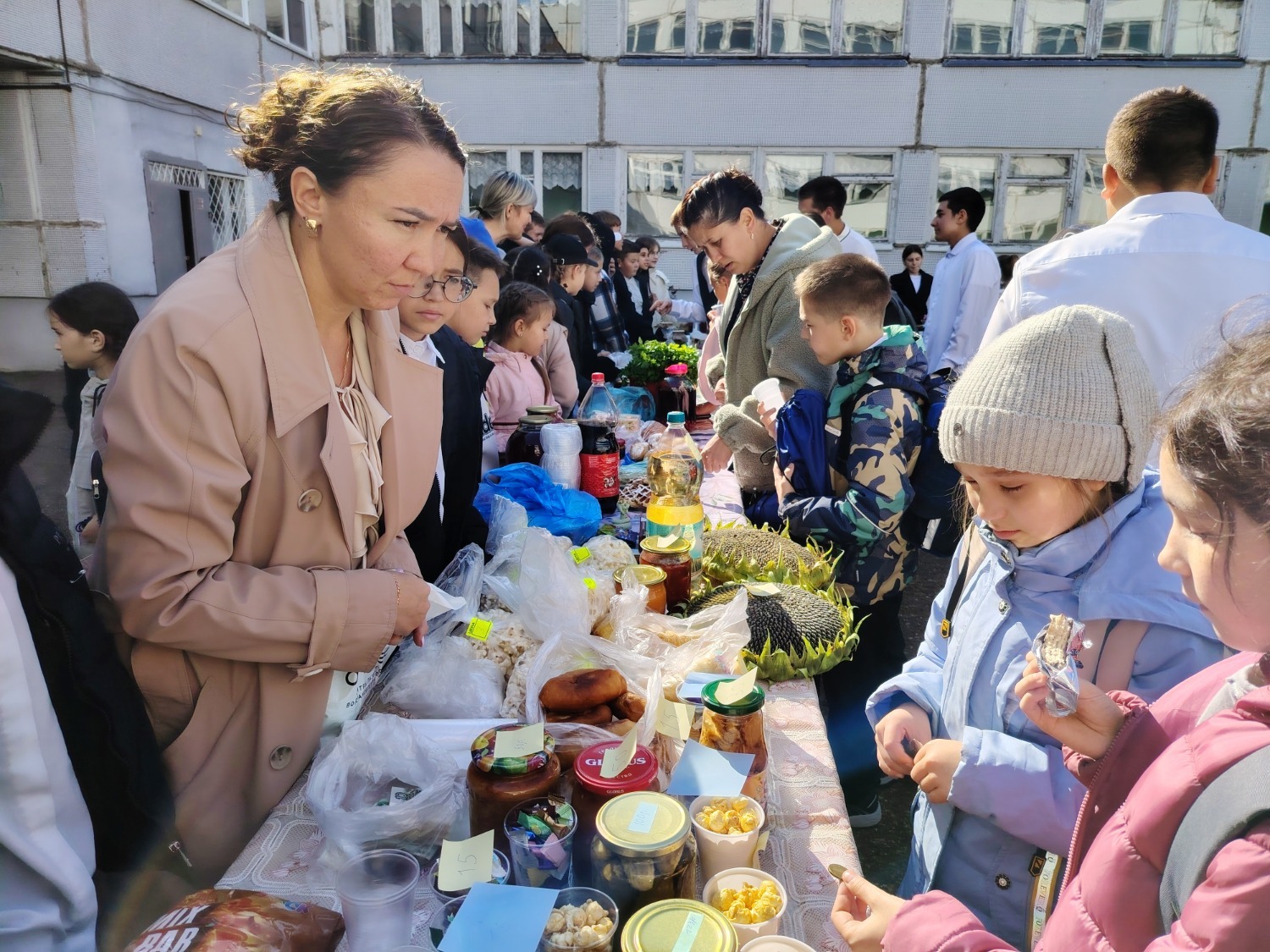 Каждый класс, каждый ребенок, вдохновленный идеей благотворительности, проявил свои маркетинговые таланты и кулинарные способности, чтобы внести свой вклад в общее дело. Столы ломились от разнообразия угощений! Блины, коржи, пироги, вафли, беляши, учпучмаки – чего только не было на прилавках! Особое место заняли дары осени, ведь этот год порадовал богатым урожаем фруктов, ягод и овощей. Заботливые домохозяйки - мамы школьников - приготовили варенья, компоты, джемы и даже пастилу.