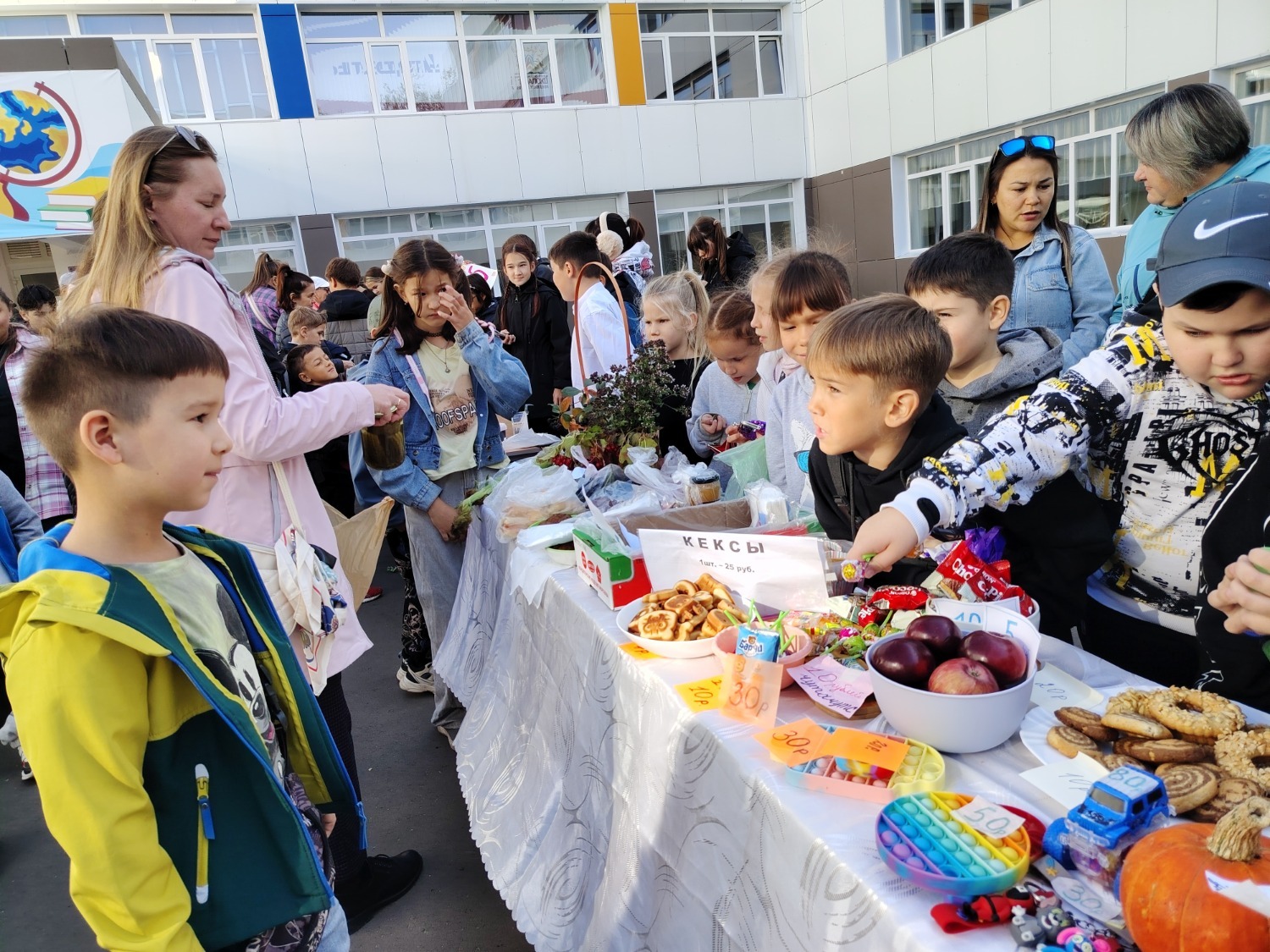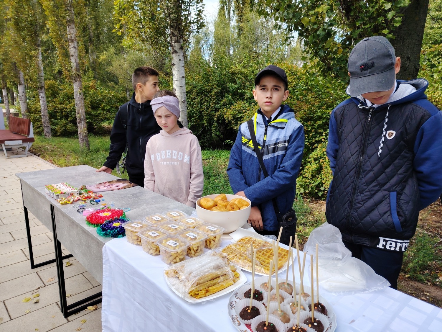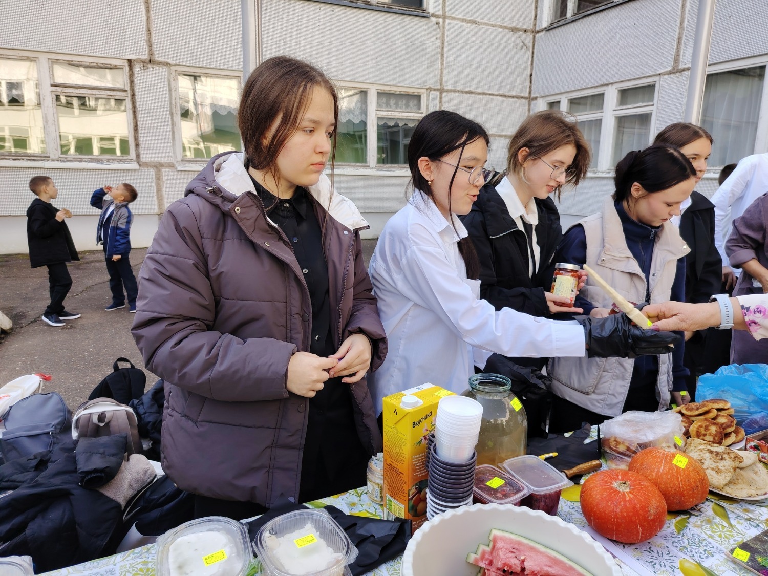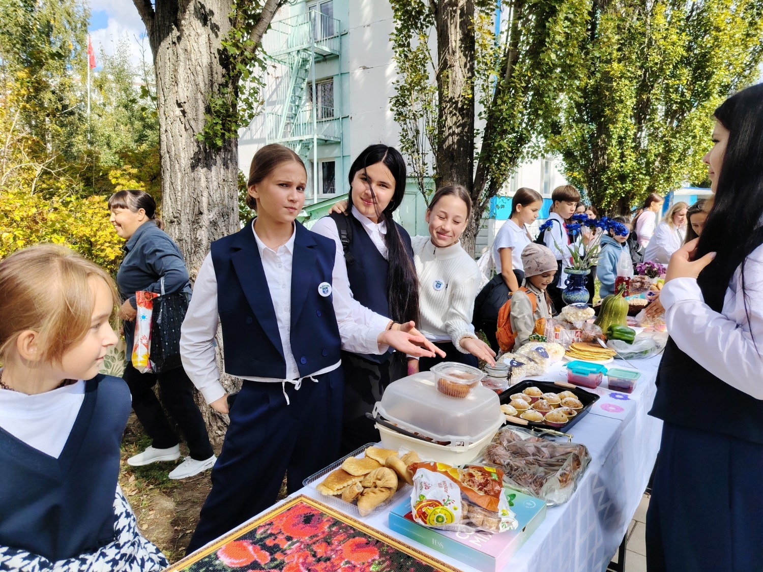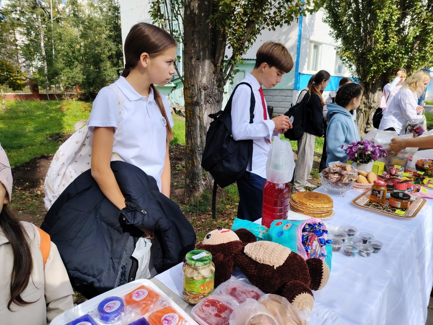 Каждый класс, каждый ребенок, вдохновленный идеей благотворительности, проявил свои маркетинговые таланты и кулинарные способности, чтобы внести свой вклад в общее дело. Столы ломились от разнообразия угощений! Блины, коржи, пироги, вафли, беляши, учпучмаки – чего только не было на прилавках! Особое место заняли дары осени, ведь этот год порадовал богатым урожаем фруктов, ягод и овощей. Заботливые домохозяйки - мамы школьников - приготовили варенья, компоты, джемы и даже пастилу.