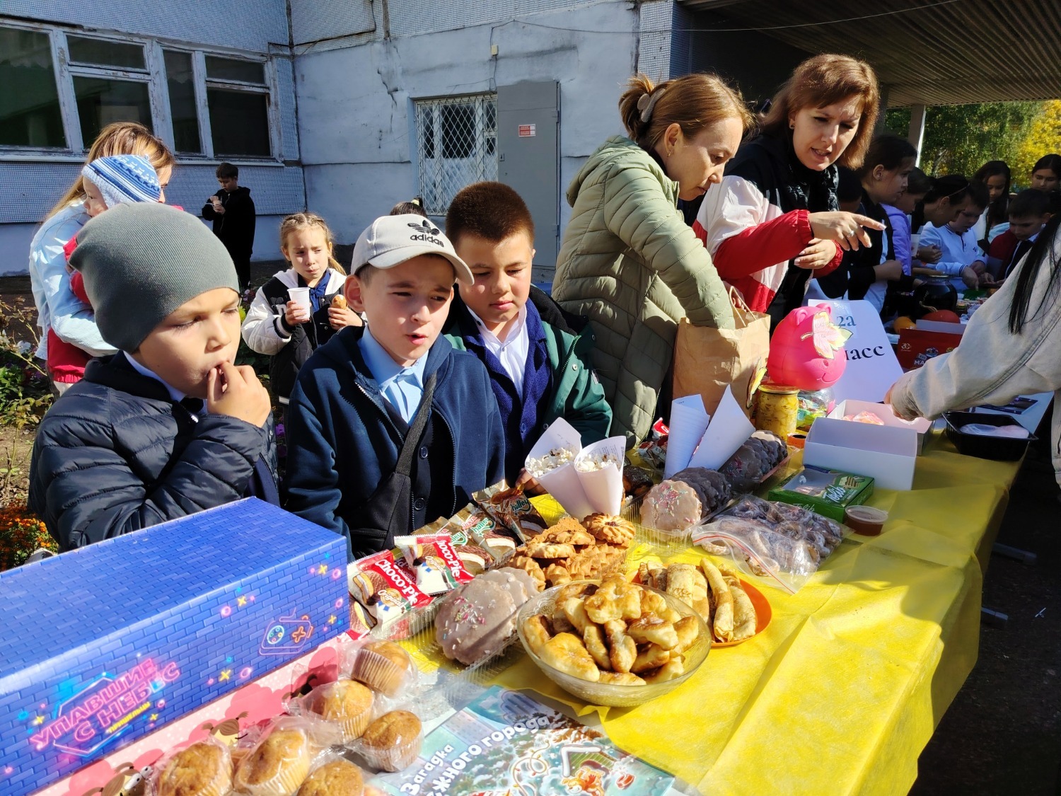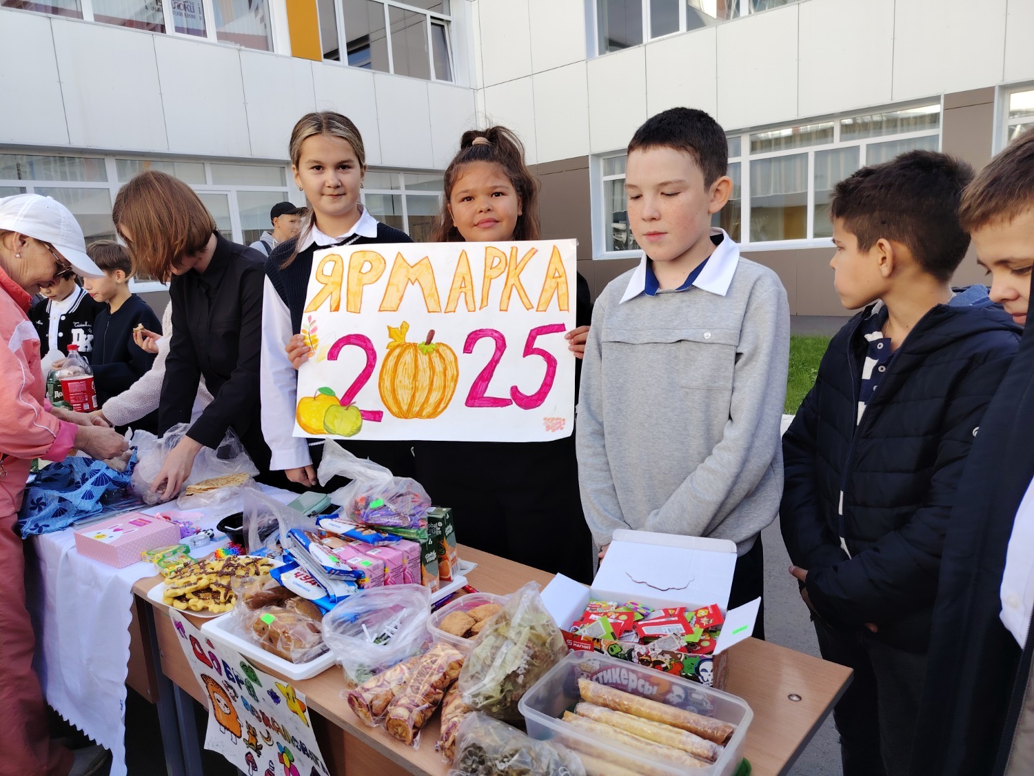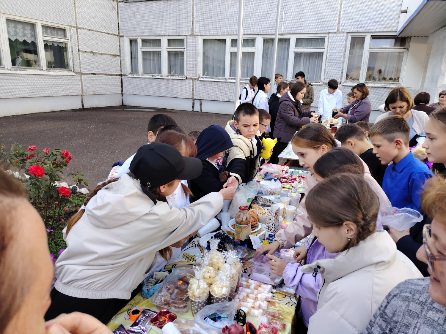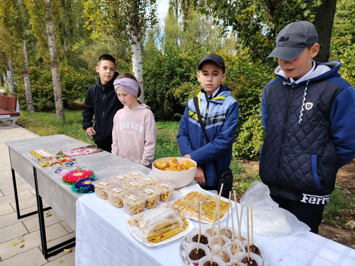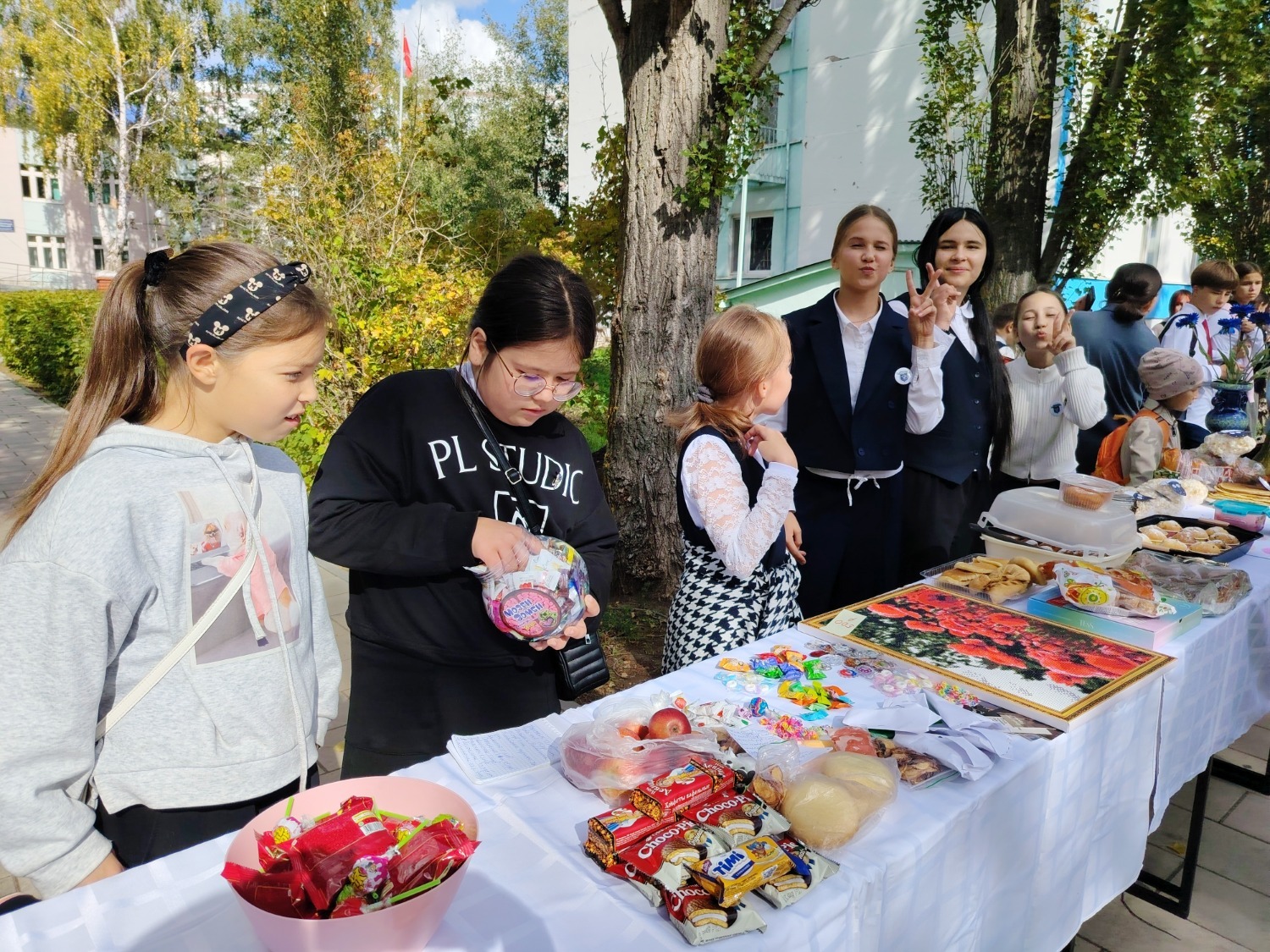 Каждый класс, каждый ребенок, вдохновленный идеей благотворительности, проявил свои маркетинговые таланты и кулинарные способности, чтобы внести свой вклад в общее дело. Столы ломились от разнообразия угощений! Блины, коржи, пироги, вафли, беляши, учпучмаки – чего только не было на прилавках! Особое место заняли дары осени, ведь этот год порадовал богатым урожаем фруктов, ягод и овощей. Заботливые домохозяйки - мамы школьников - приготовили варенья, компоты, джемы и даже пастилу.