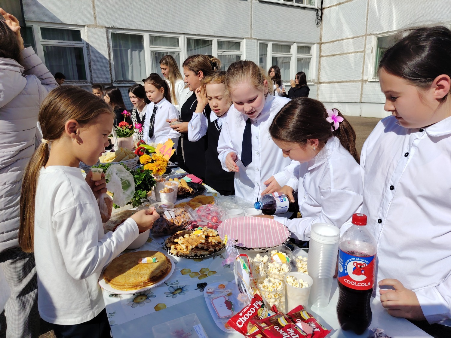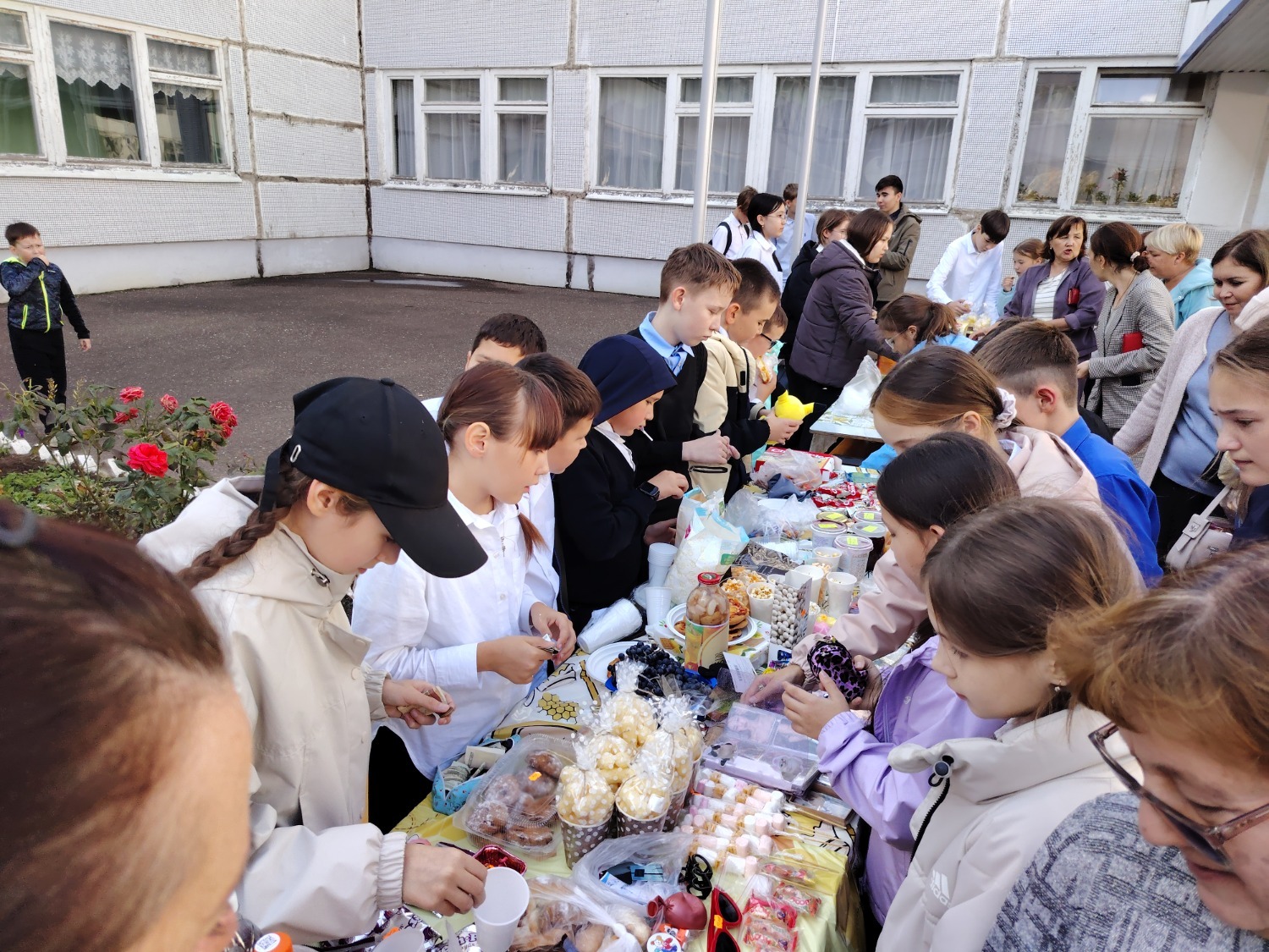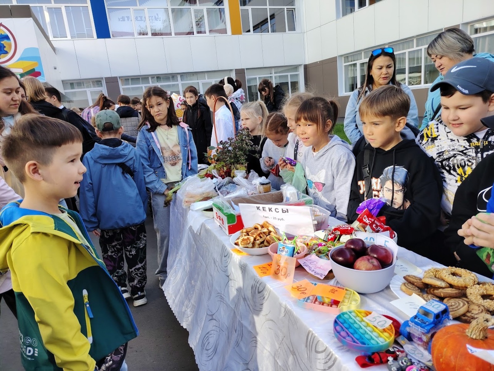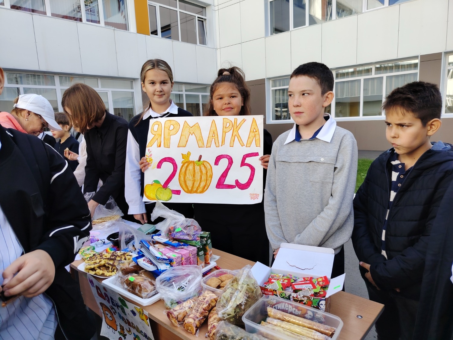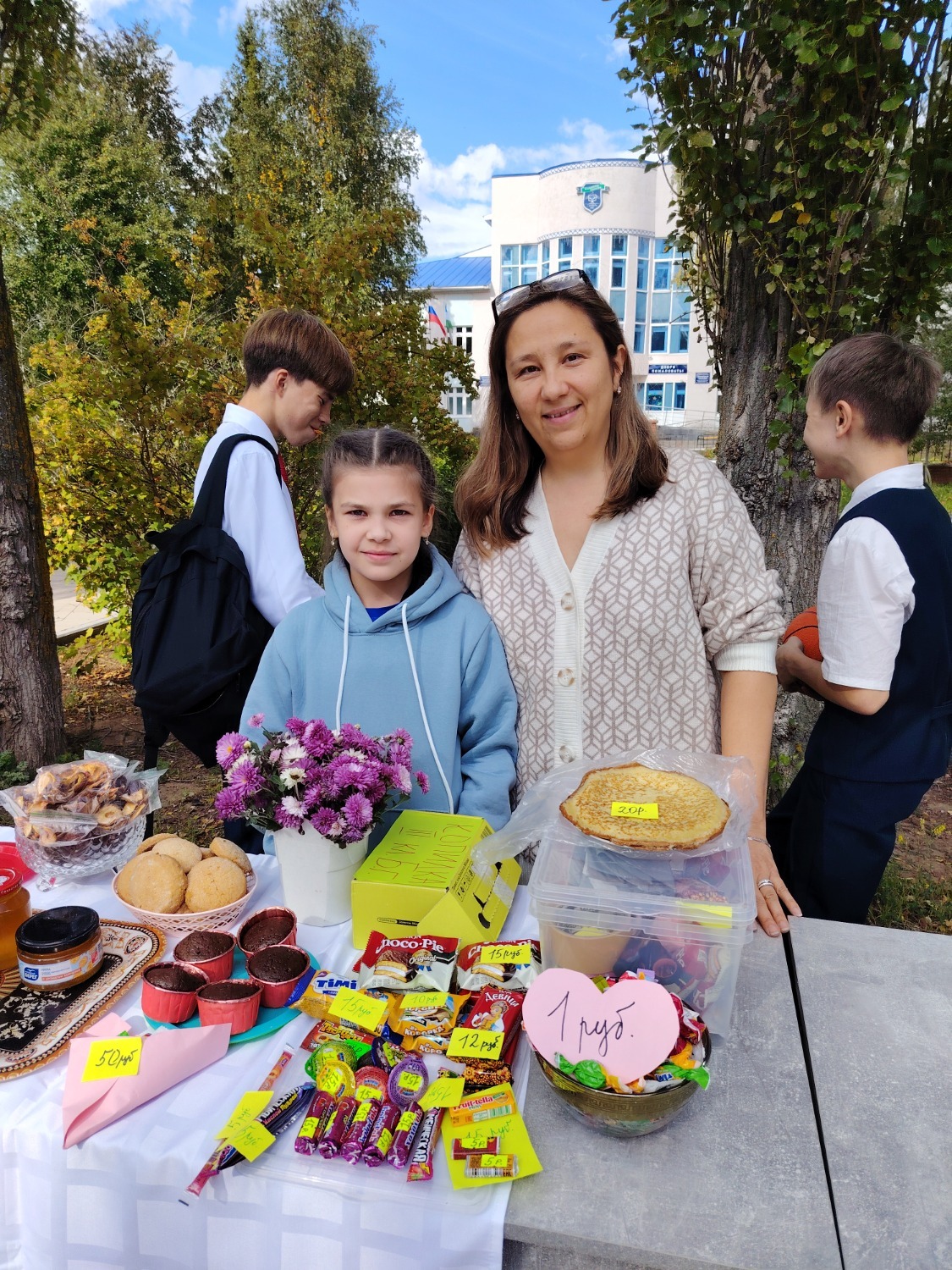 Каждый класс, каждый ребенок, вдохновленный идеей благотворительности, проявил свои маркетинговые таланты и кулинарные способности, чтобы внести свой вклад в общее дело. Столы ломились от разнообразия угощений! Блины, коржи, пироги, вафли, беляши, учпучмаки – чего только не было на прилавках! Особое место заняли дары осени, ведь этот год порадовал богатым урожаем фруктов, ягод и овощей. Заботливые домохозяйки - мамы школьников - приготовили варенья, компоты, джемы и даже пастилу.