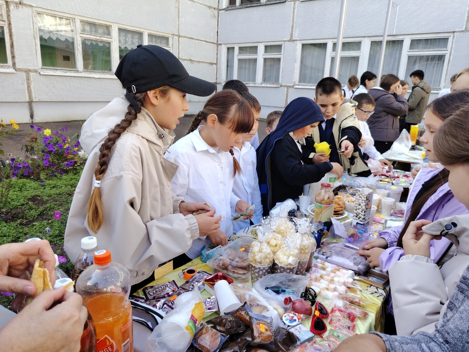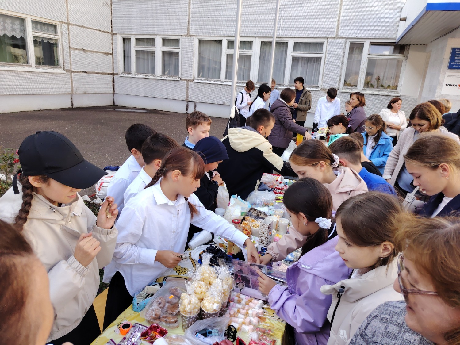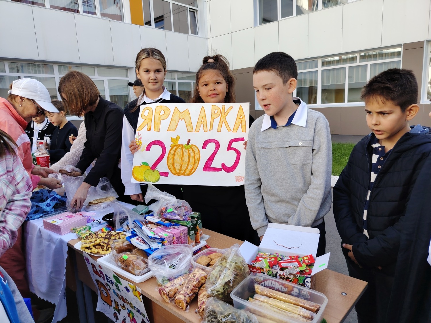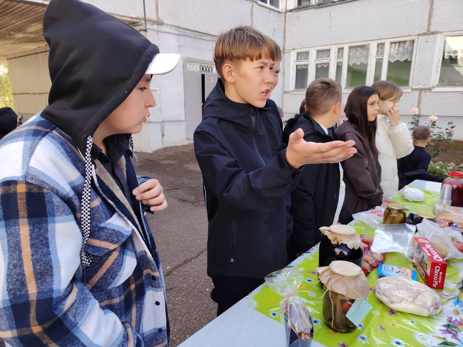 Каждый класс, каждый ребенок, вдохновленный идеей благотворительности, проявил свои маркетинговые таланты и кулинарные способности, чтобы внести свой вклад в общее дело. Столы ломились от разнообразия угощений! Блины, коржи, пироги, вафли, беляши, учпучмаки – чего только не было на прилавках! Особое место заняли дары осени, ведь этот год порадовал богатым урожаем фруктов, ягод и овощей. Заботливые домохозяйки - мамы школьников - приготовили варенья, компоты, джемы и даже пастилу.