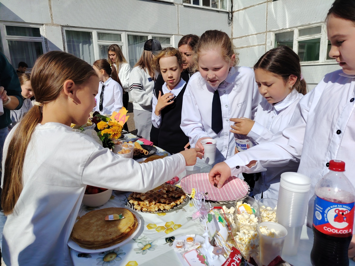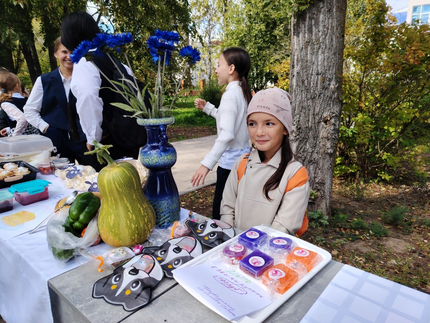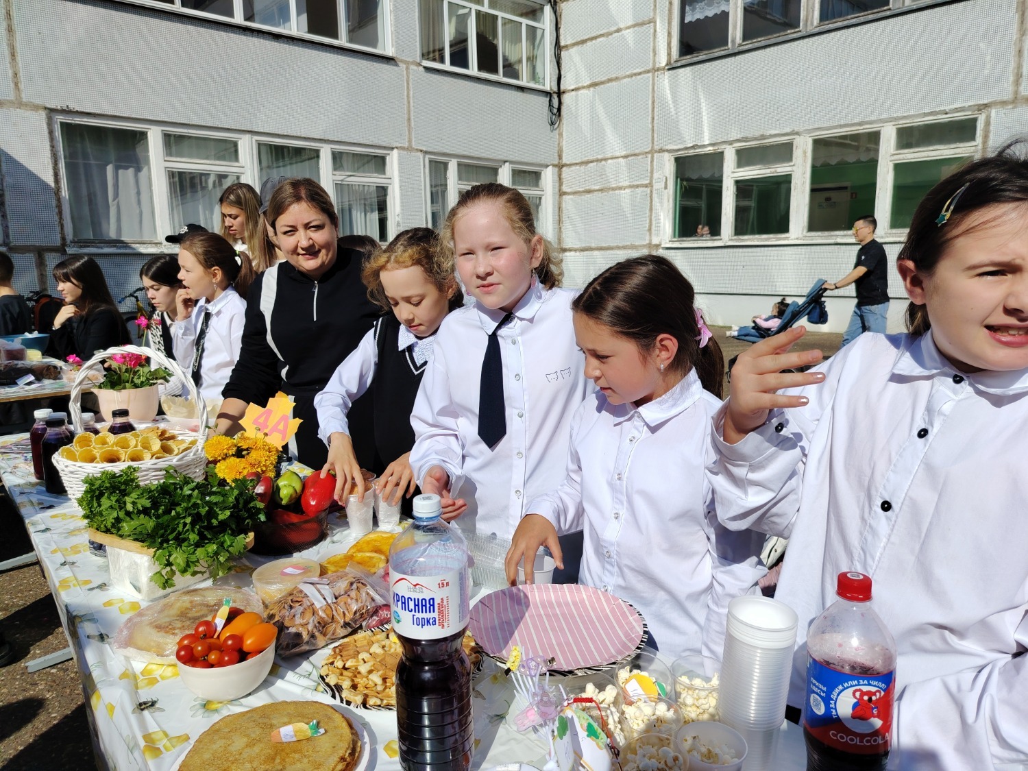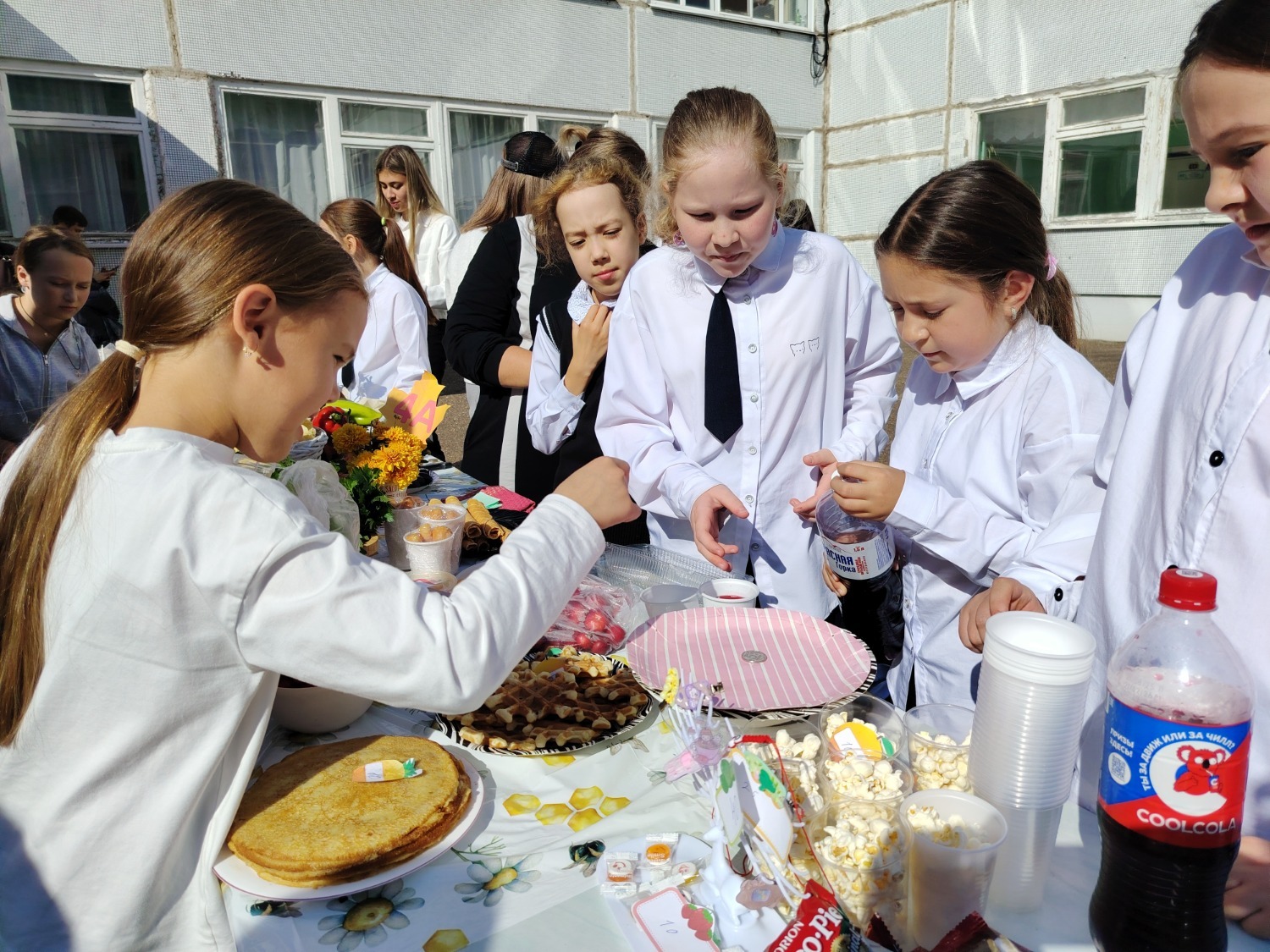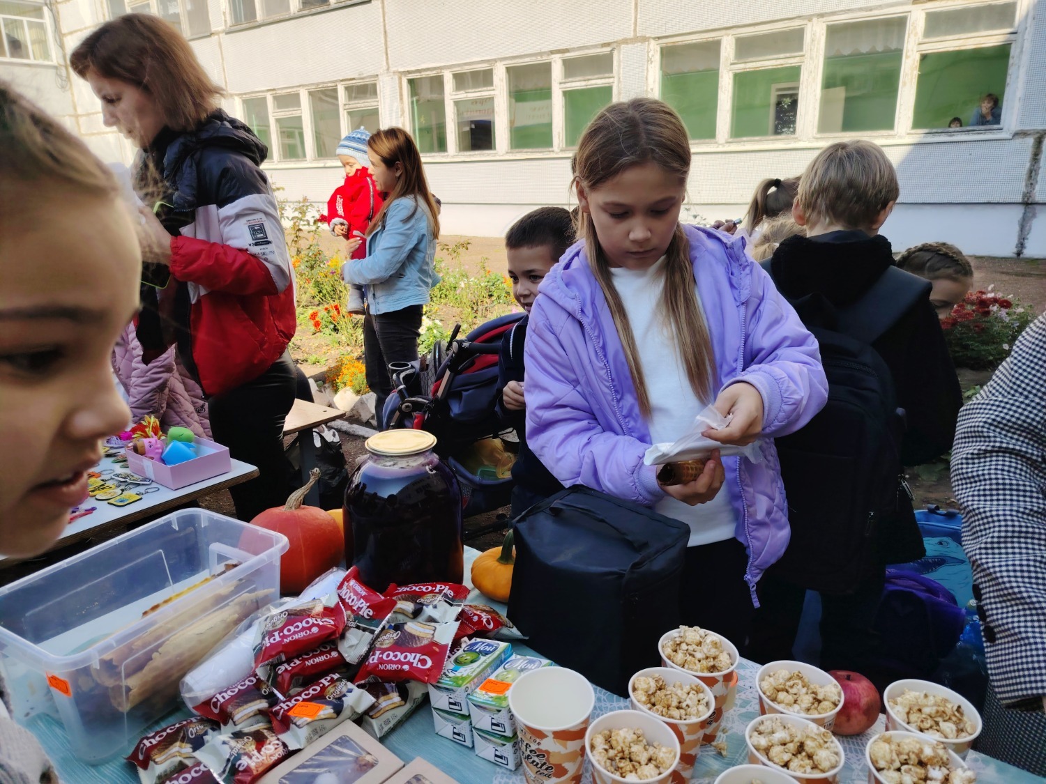 Каждый класс, каждый ребенок, вдохновленный идеей благотворительности, проявил свои маркетинговые таланты и кулинарные способности, чтобы внести свой вклад в общее дело. Столы ломились от разнообразия угощений! Блины, коржи, пироги, вафли, беляши, учпучмаки – чего только не было на прилавках! Особое место заняли дары осени, ведь этот год порадовал богатым урожаем фруктов, ягод и овощей. Заботливые домохозяйки - мамы школьников - приготовили варенья, компоты, джемы и даже пастилу.