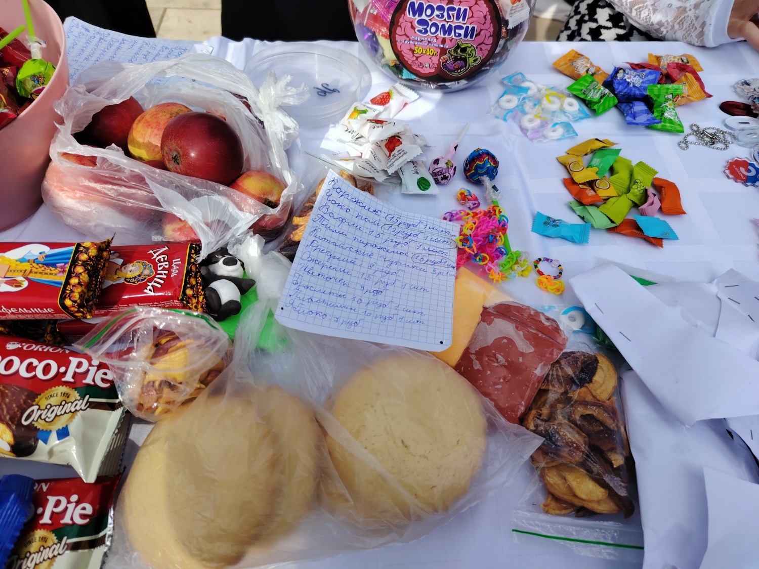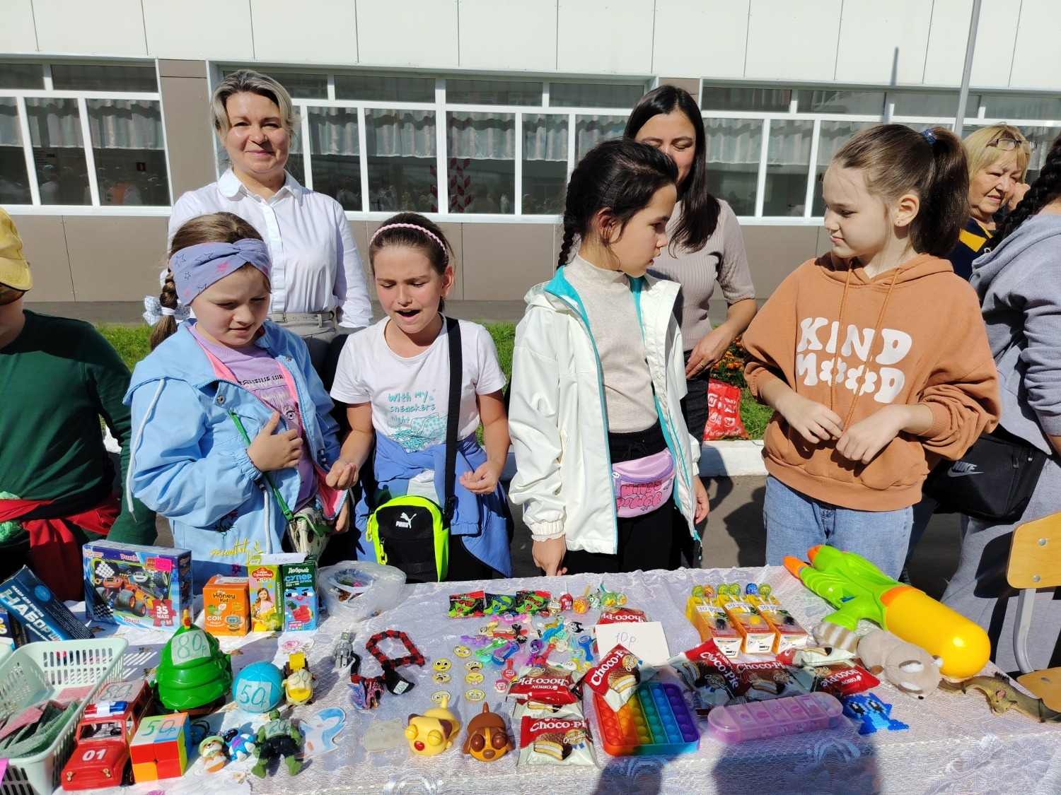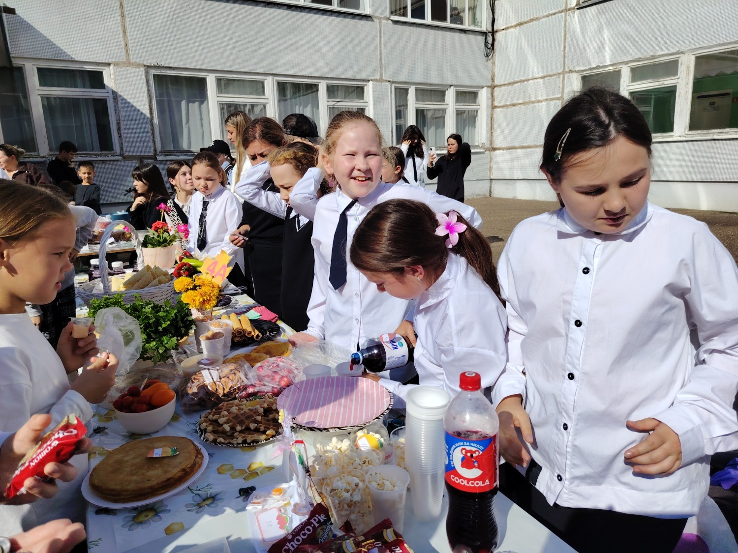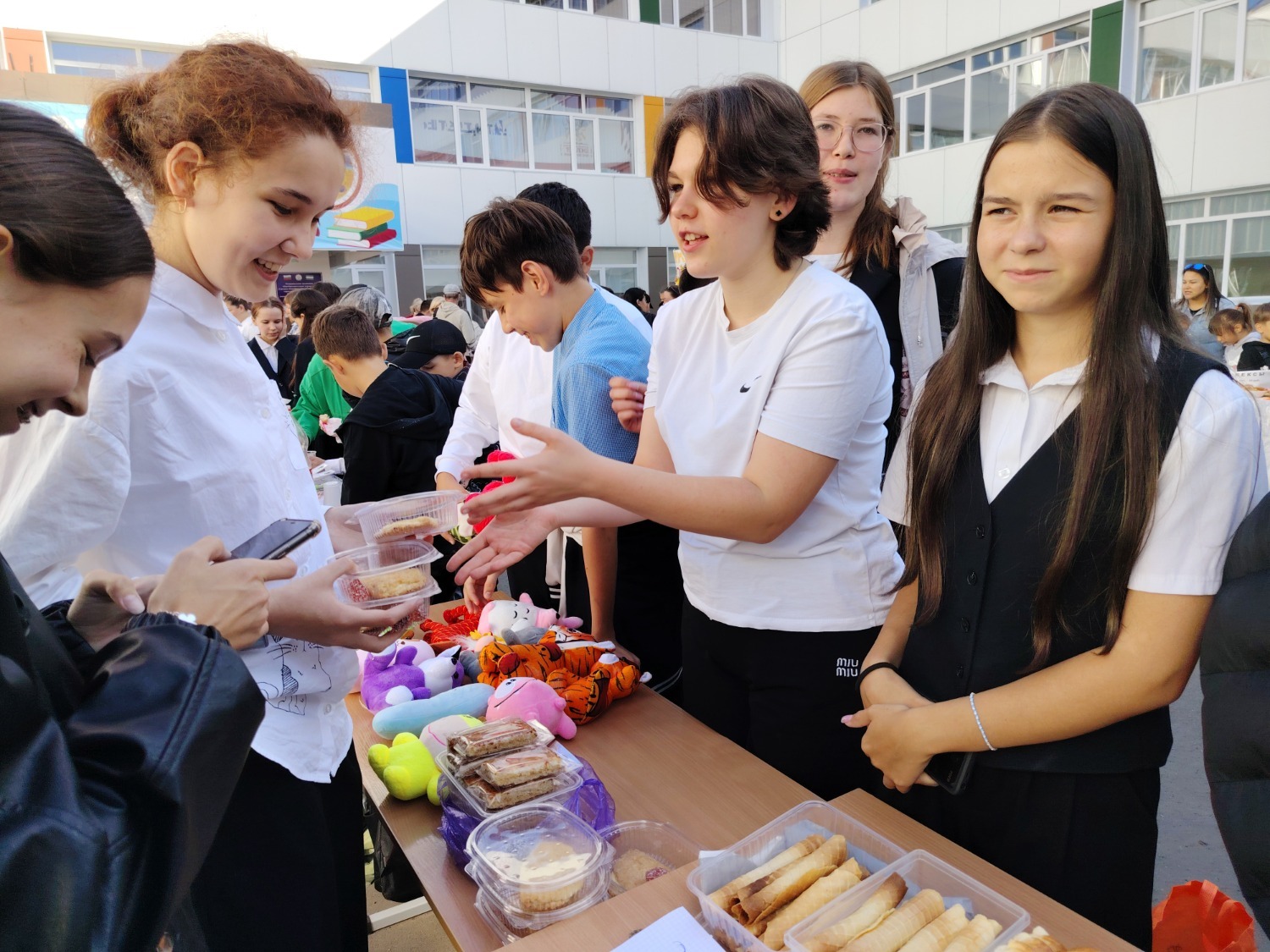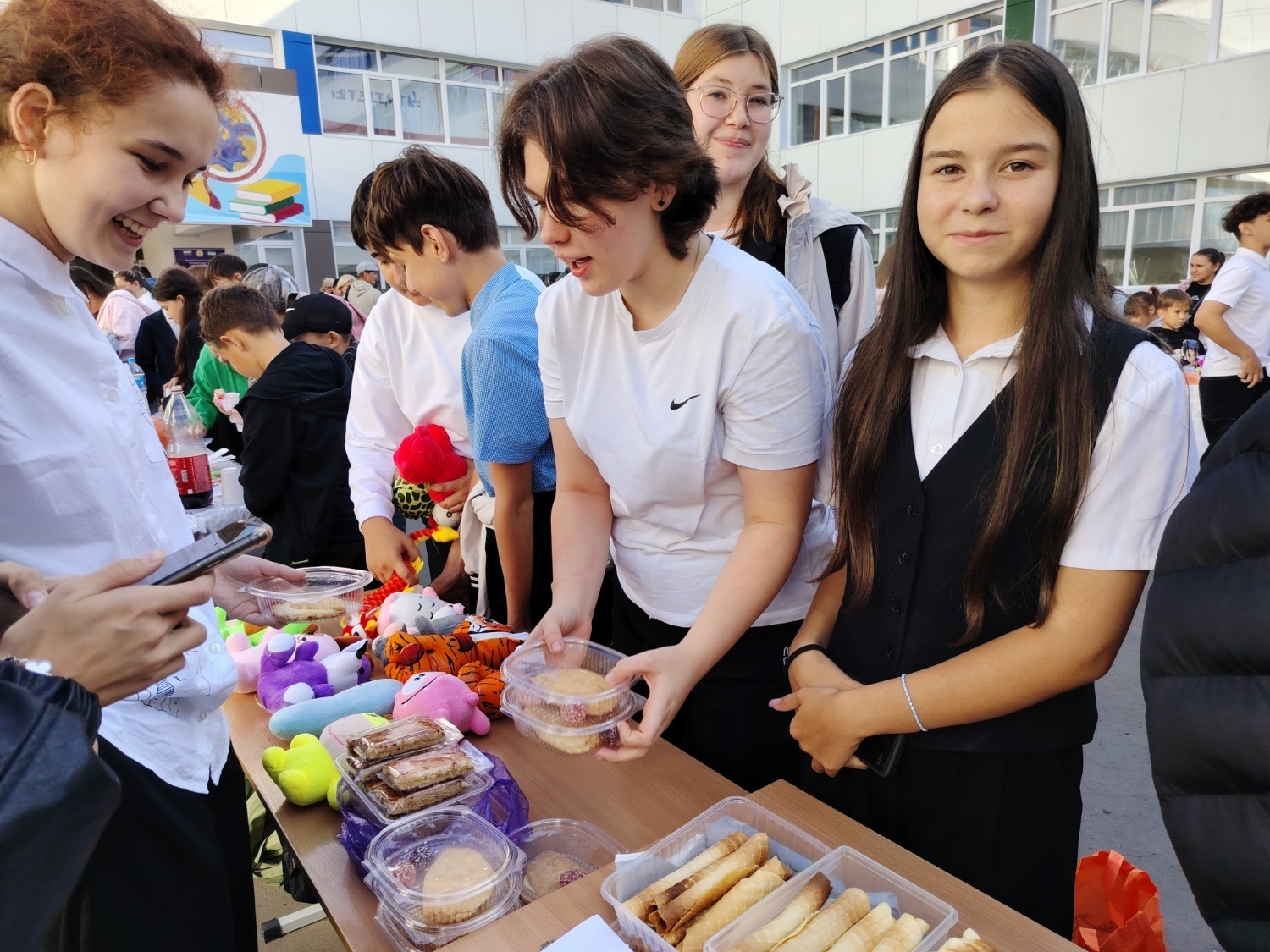 Каждый класс, каждый ребенок, вдохновленный идеей благотворительности, проявил свои маркетинговые таланты и кулинарные способности, чтобы внести свой вклад в общее дело. Столы ломились от разнообразия угощений! Блины, коржи, пироги, вафли, беляши, учпучмаки – чего только не было на прилавках! Особое место заняли дары осени, ведь этот год порадовал богатым урожаем фруктов, ягод и овощей. Заботливые домохозяйки - мамы школьников - приготовили варенья, компоты, джемы и даже пастилу.